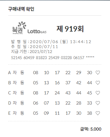 ๊ทธ๋๋ ๋งค์ฃผ ์์์ผ ๋ง๋ค ๋ํ๋ณต๊ถ์์ 5์ฒ์์น๊ตฌ๋งคํ๊ธฐ