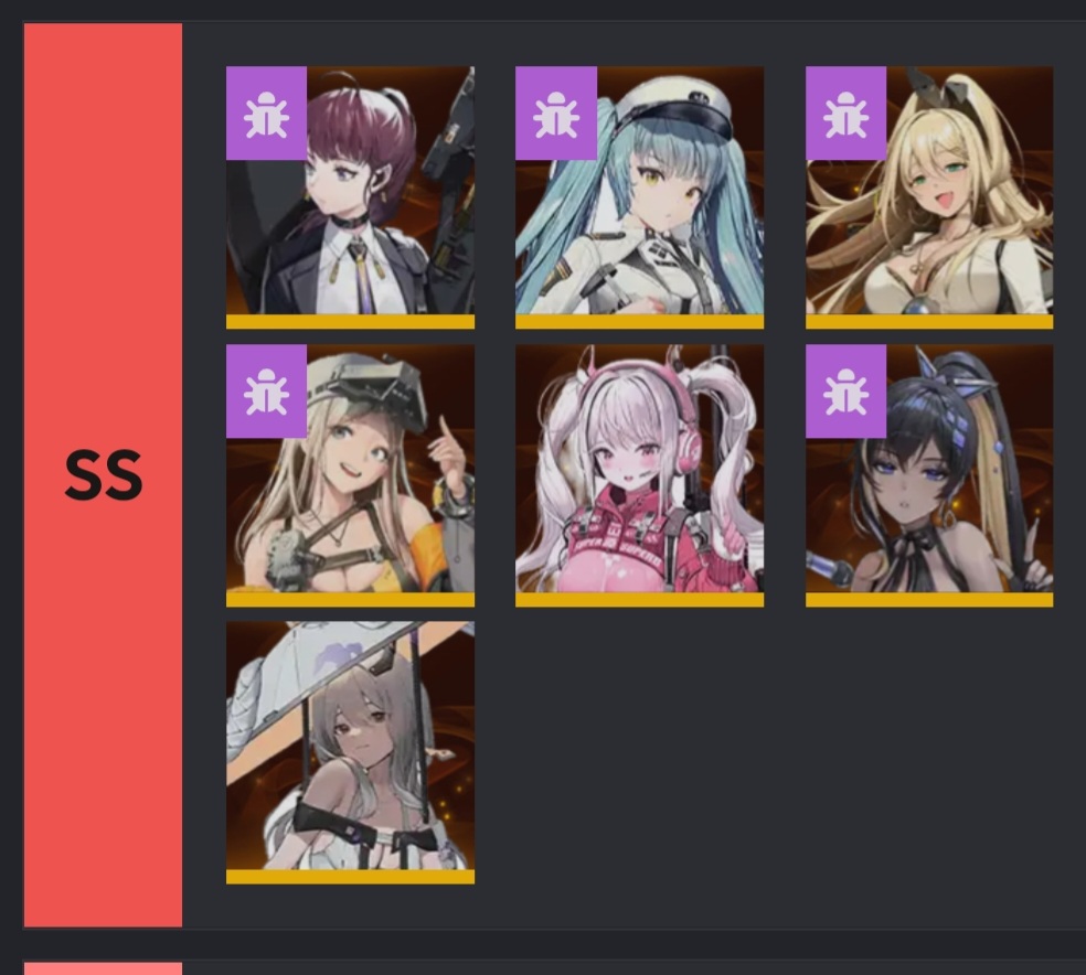 A tier list for the Goddess of Victory: NIKKE gacha game.